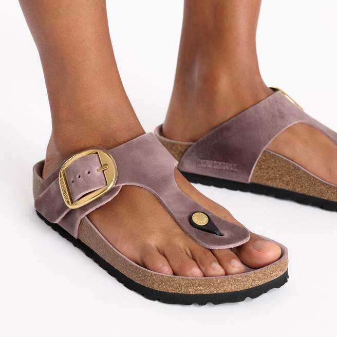 Meet the brand new Gizeh Big Buckle. This classic thong sandal gets a fresh update with an elegant amplified buckle. This feminine style that’s comfortable and easy to wear. The lining of the footbed is covered with soft smooth leather and matches the shoe in color. The upper is made from extra thick, smooth leather and features an open-selvage finish.