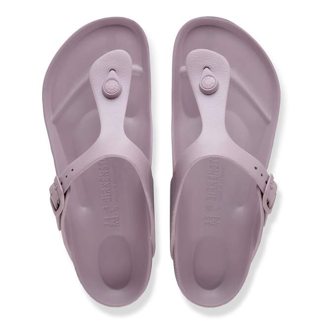 The BIRKENSTOCK Gizeh is our classic thong sandal. Modeled on the cork original, this sandal is made from ultra lightweight and highly flexible EVA. These colorful sandals are shock-absorbent, waterproof, and skin-friendly. Wear them at the beach, in the garden, or in wellness and spa areas. It’s the perfect addition to your classic BIRKENSTOCK sandals.