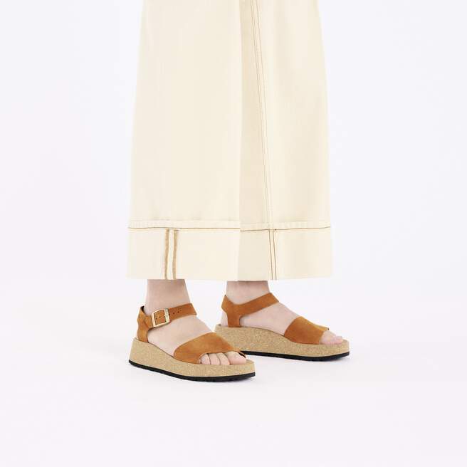 From Papillio? by BIRKENSTOCK?. The Glenda wedge feels as elevated as it looks, with an ankle strap and contoured footbed for the ultimate in support. Put your comfort above the rest.