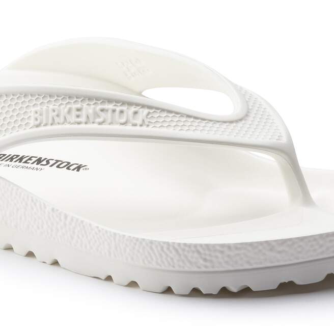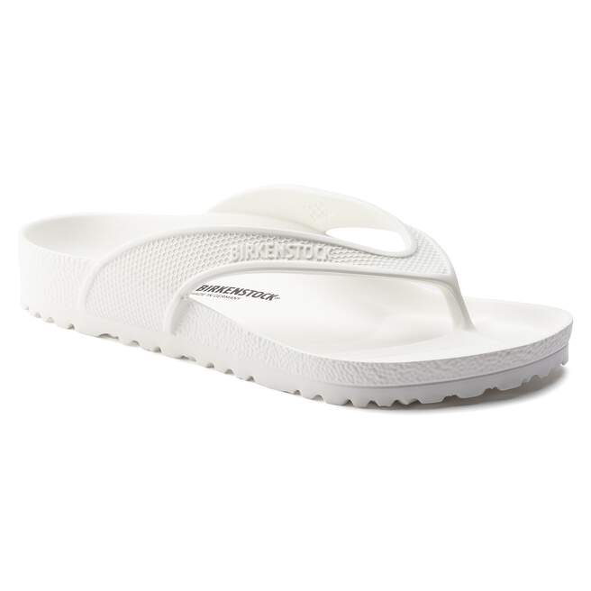 The BIRKENSTOCK Honolulu is a sporty thong sandal with embossed straps. Modeled on the cork sandal, this sandal is made from light, flexible and waterproof EVA.
