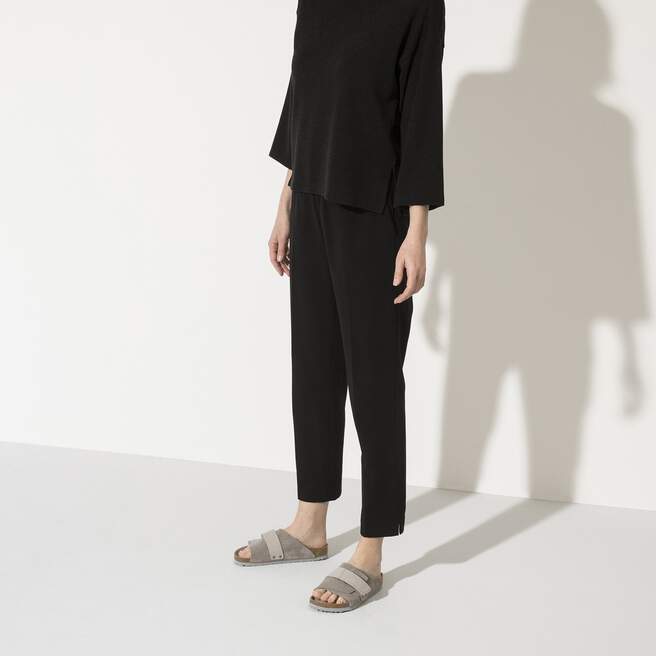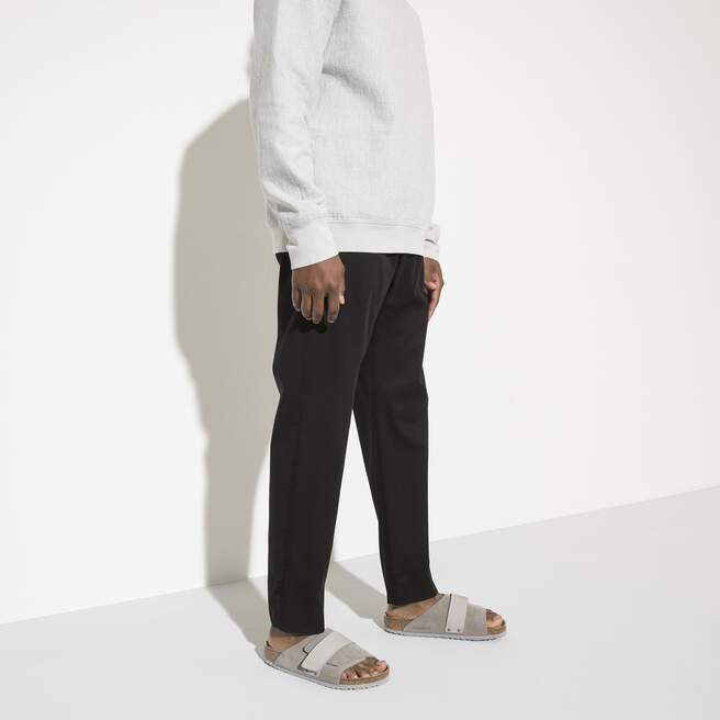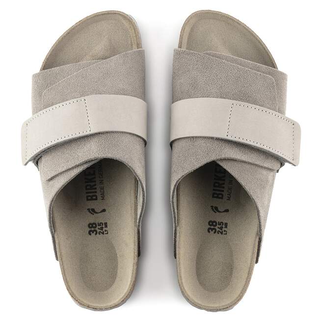 The BIRKENSTOCK Kyoto is reinterpreted from the classic Z¨¹rich model. The buckles have been replaced with a hook and loop closure for optimum fit. Complemented by two decorative rivets. The color-coordinated outsole rounds off the shoe¡¯s look. This version has an added update of mixed materials – with a soft suede upper and a sleek nubuck leather strap.