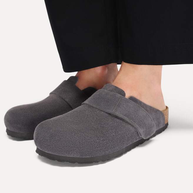 The casual BIRKENSTOCK Loma takes its inspiration from the classic Boston model and stands out with its compact design with a wide touch fastener. The upper is made from especially soft suede which hugs the foot like a second skin.