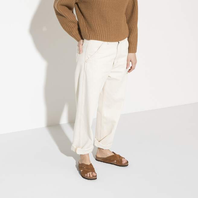 The Lugano is a retro woven-style sandal, featuring soft, suede leather crossed-straps and the classic comfort of a BIRKENSTOCK footbed. With its additional foam layer, the soft footbed offers extra comfort ¨C all day long.
