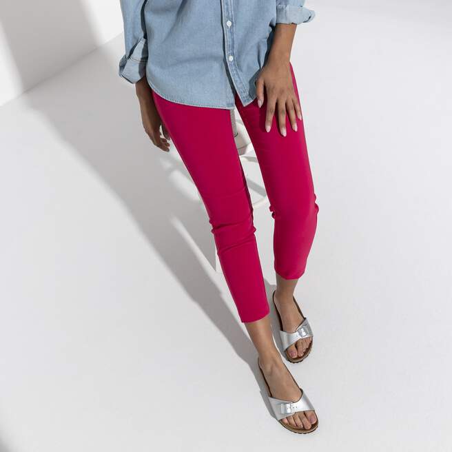 The BIRKENSTOCK Madrid is the oldest member of the family of models, making it a veritable classic. Launched as a ¡°gymnastics sandal¡± half a century ago, this simple single-strap model has gone on to become a firm fashion favorite. This version features a metallic glossy effect. The upper is made from the skin-friendly, hard-wearing synthetic material Birko-Flor?.