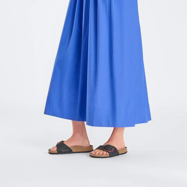 An icon since 1963, the Madrid sandal redefined the slip-on look with a single strap. This season, an oversized buckle accessorizes soft nubuck leather for any occasion. Equally sophisticated and supportive, the style rests on the contoured footbed it first made iconic.