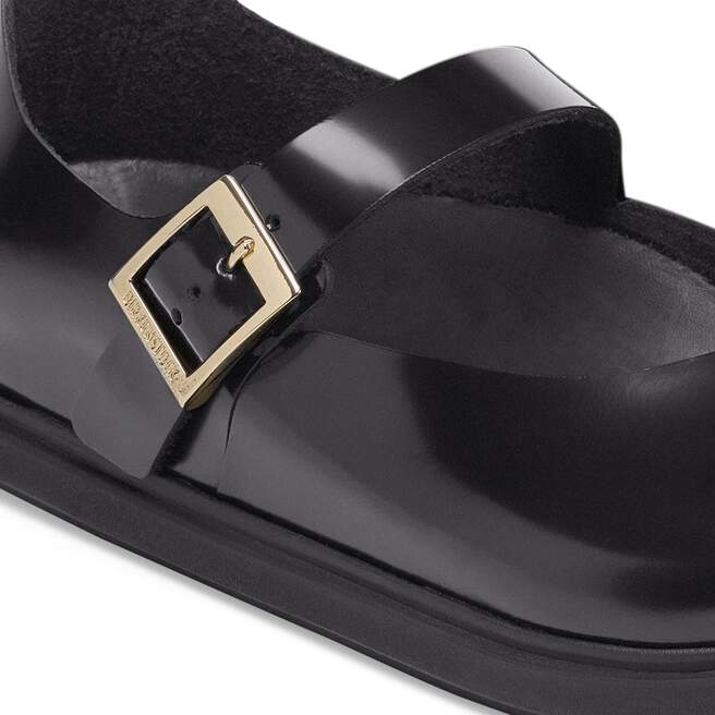 The BIRKENSTOCK Mantova is an interpretation of the classic Mary Jane in a rustic and especially comfy version. The model has an open-selvage, unlined finish which emphasizes its natural look. This version features the Droplet Buckle, which is made entirely of high-quality Zamak in a square shape. Its design combines premium quality with a modern, timeless look. The upper is made of high-quality natural leather with a shiny patent coating.