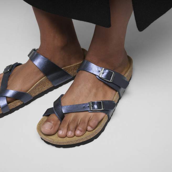 Crisscross straps with a special shimmer, the Mayari sandal dresses for RSVP season in our signature material. Designed on an original contoured footbed for last-to-leave support.