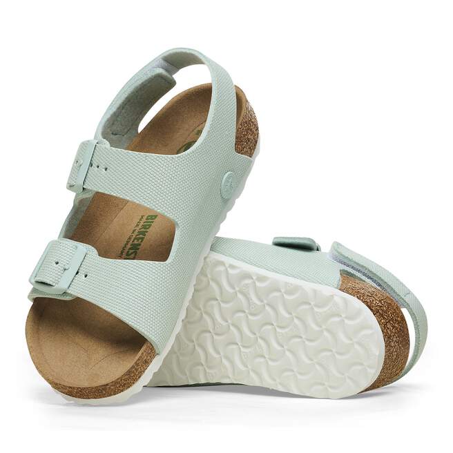 A two-strap style from the front with extra security in the back. The Milano sandal goes vegan with a 100% natural cotton canvas upper¡ªas laid-back and effortless as it looks. Complete with an original BIRKENSTOCK? cork-latex footbed for the ultimate in all-day support.
