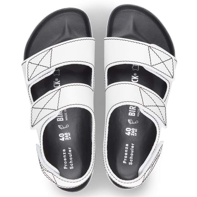 Polished urbanism and durable simplicity meet in this edition of the Milano for BIRKENSTOCK x Proenza Schouler. The functional durability of the design receives an urban uplift, as we honor the classic sneaker detail of Proenza Schouler and employ a hook & loop closure in lieu of our three buckles.